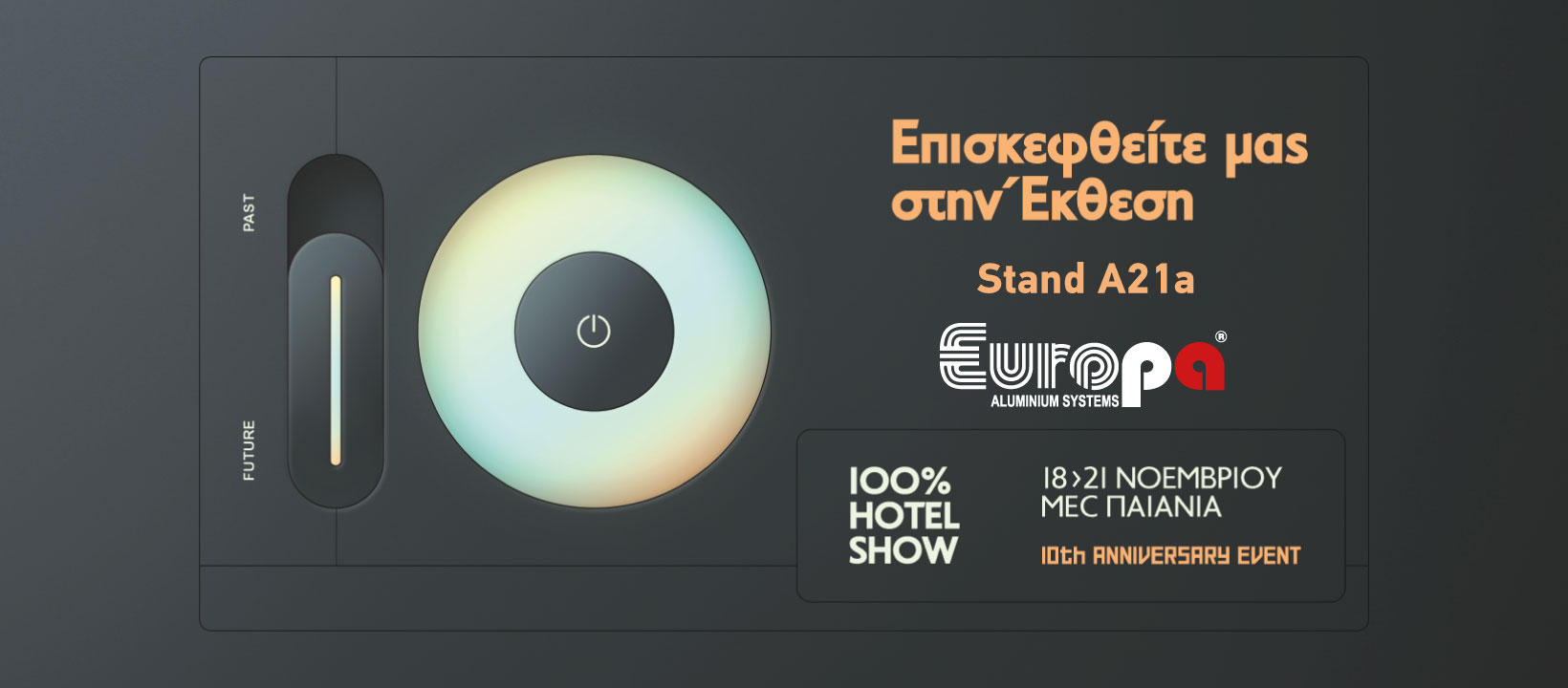 Η παρουσία της Europa στα αρχιτεκτονικά δρώμενα παραμένει συνεχής και σταθερή! Και στην 100% Hotel Show η Europa δηλώνει παρούσα με περίπτερο στο πλαίσιο της έκθεσης στο stand A21a!